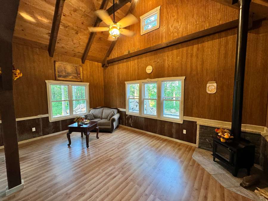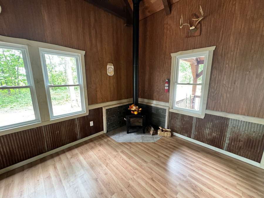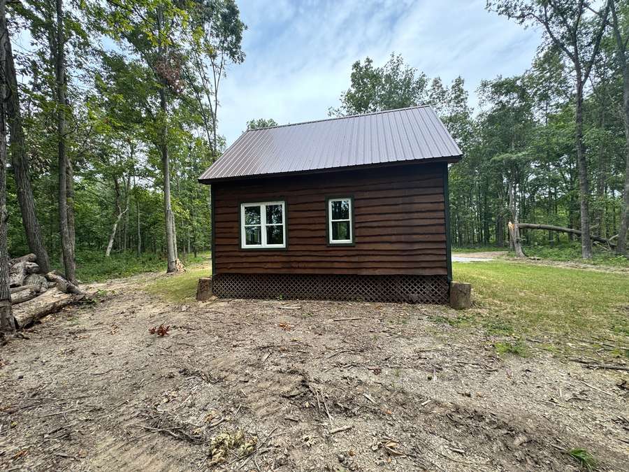 The cabin welcomes you with a cozy 8’ x 16’ covered front porch, a spacious 12’ x 16’ loft, and ample windows that fill the space with natural light, allowing you to soak in the breathtaking wooded scenery. To make your transition seamless, all furnishings, decor, and a generator will be included in the sale. Additional buildings included with the property are an outhouse and an enclosed shanty to house the cabin generator.