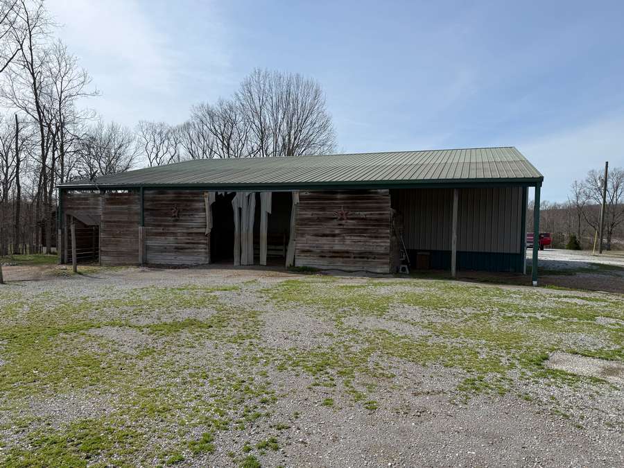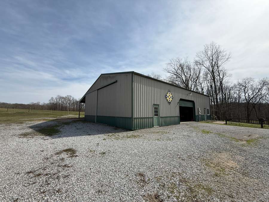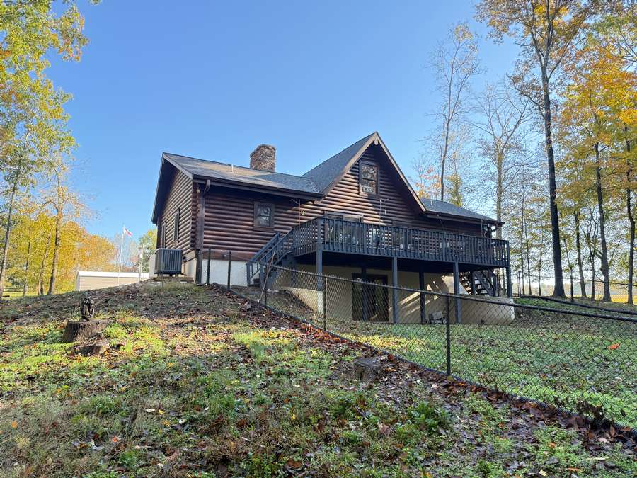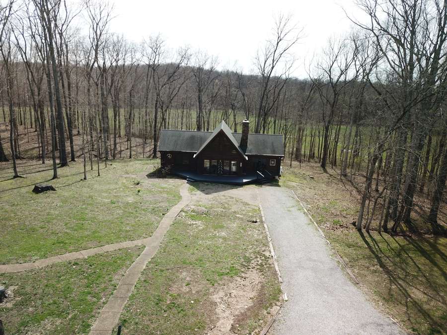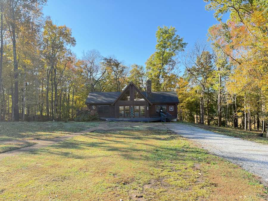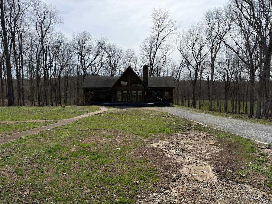 Welcome to a beautiful custom log home set on 40 picturesque acres, offering privacy, rustic charm, and endless opportunities to enjoy the outdoors. From the moment you arrive, the circular driveway provides easy access to both the home and the impressive 40x60 pole barn-perfect for turning around trailers, campers, or farm equipment. Step inside and you'll immediately be drawn to the stunning family room, where soaring wood beams and floor-to-ceiling windows create a warm, inviting space filled with natural light. A striking stone fireplace anchors the room, making it the perfect place to gather with family and friends. The kitchen blends rustic elegance with everyday functionality, featuring warm wood cabinetry, granite countertops, and a convenient peninsula for casual dining or entertaining. Just off the kitchen, step out onto a private deck overlooking peaceful woodland views-an ideal spot for morning coffee or evening relaxation. The main floor offers comfortable and convenient living with a spacious primary bedroom and ensuite bathroom. The primary bedroom showcases a unique stone feature wall that forms the back of the living room fireplace, adding a distinctive architectural touch. Across the home you'll find a second bedroom, a half bath, and an adorable laundry room that is both functional and surprisingly charming. Wooden stairs lead to an inviting loft area upstairs-perfect for a reading nook, craft room, home office, or whatever your imagination inspires. The walkout basement expands the living space with another family room that opens to a private patio overlooking the woods. This level also includes finished rooms that could serve as additional bedrooms, another bathroom for guests, roomy closets, and even a dedicated office space. Outside, the property continues to impress. The 40x60 pole barn features concrete floors and includes a finished room with a half bath, offering a versatile space that could even serve as private guest quarters. Along the back side of the barn is a loafing area that previously sheltered horses. Two additional storage buildings provide plenty of room for side-by-sides, boats, four-wheelers, deer stands, and more. Approximately 25 acres of the property are productive farm ground currently leased to a local farmer for row crops. These crops provide an excellent food source for wildlife, especially white-tailed deer and wild turkey. Outdoor enthusiasts will appreciate being able to step right out the back door to hunt during local bow and shotgun seasons, in an area well known for trophy-size deer. Located at 664 State Highway 145 North, this property sits conveniently between Harrisburg, Illinois and Paducah, Kentucky in the heart of the Shawnee National Forest region. It's just minutes from some of Southern Illinois' most beloved outdoor destinations, including Millstone Bluff, Lake Glendale Recreation Area, Dixon Springs State Park, and the River to River Trail. If you've been dreaming of a peaceful country retreat with room to roam, explore, and enjoy nature, this remarkable log home offers the perfect blend of comfort, recreation, and natural beauty. Schedule your private showing today and come experience all this property has to offer.