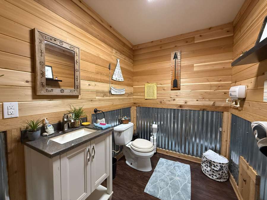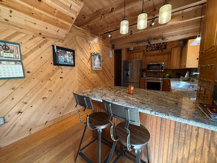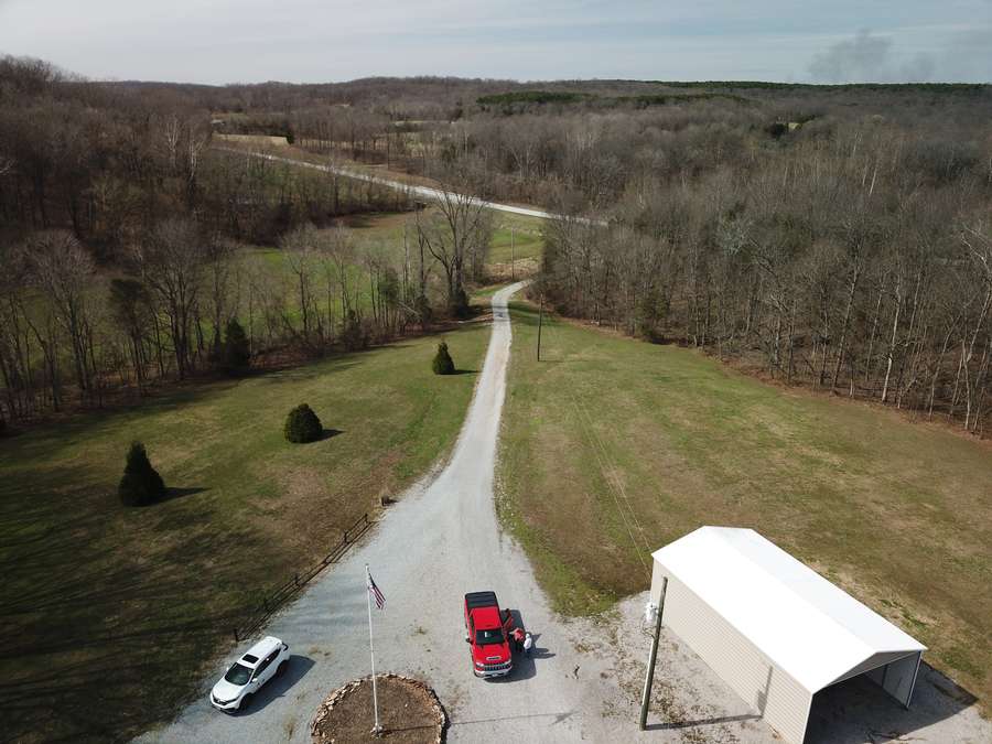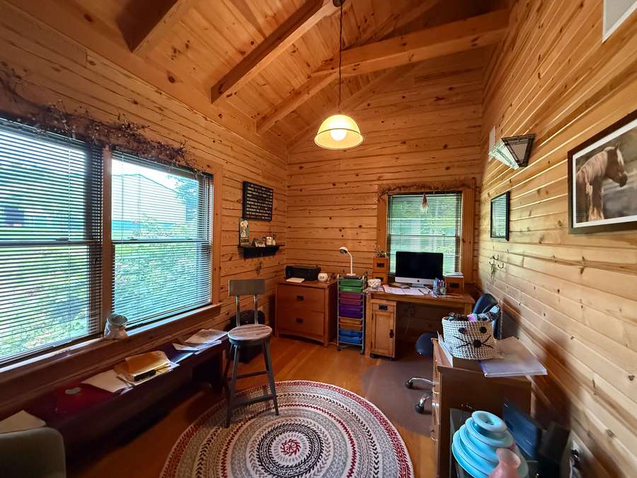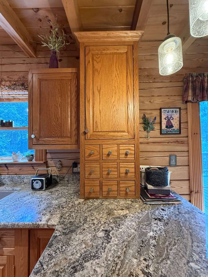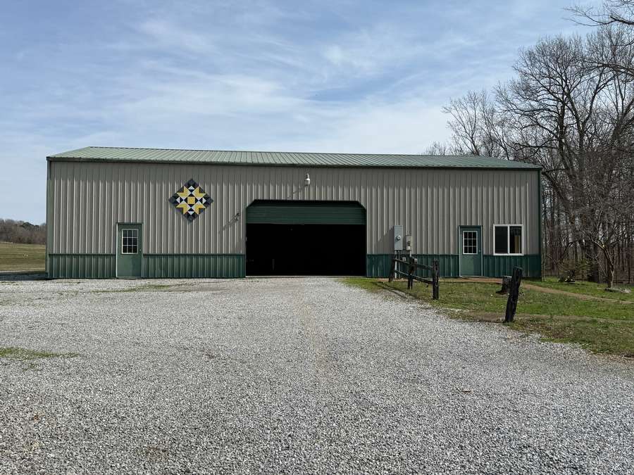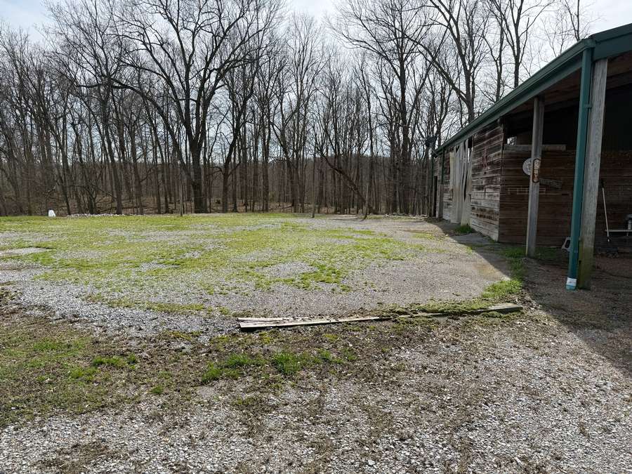 Welcome to a beautiful custom log home set on 40 picturesque acres, offering privacy, rustic charm, and endless opportunities to enjoy the outdoors. From the moment you arrive, the circular driveway provides easy access to both the home and the impressive 40x60 pole barn-perfect for turning around trailers, campers, or farm equipment. Step inside and you'll immediately be drawn to the stunning family room, where soaring wood beams and floor-to-ceiling windows create a warm, inviting space filled with natural light. A striking stone fireplace anchors the room, making it the perfect place to gather with family and friends. The kitchen blends rustic elegance with everyday functionality, featuring warm wood cabinetry, granite countertops, and a convenient peninsula for casual dining or entertaining. Just off the kitchen, step out onto a private deck overlooking peaceful woodland views-an ideal spot for morning coffee or evening relaxation. The main floor offers comfortable and convenient living with a spacious primary bedroom and ensuite bathroom. The primary bedroom showcases a unique stone feature wall that forms the back of the living room fireplace, adding a distinctive architectural touch. Across the home you'll find a second bedroom, a half bath, and an adorable laundry room that is both functional and surprisingly charming. Wooden stairs lead to an inviting loft area upstairs-perfect for a reading nook, craft room, home office, or whatever your imagination inspires. The walkout basement expands the living space with another family room that opens to a private patio overlooking the woods. This level also includes finished rooms that could serve as additional bedrooms, another bathroom for guests, roomy closets, and even a dedicated office space. Outside, the property continues to impress. The 40x60 pole barn features concrete floors and includes a finished room with a half bath, offering a versatile space that could even serve as private guest quarters. Along the back side of the barn is a loafing area that previously sheltered horses. Two additional storage buildings provide plenty of room for side-by-sides, boats, four-wheelers, deer stands, and more. Approximately 25 acres of the property are productive farm ground currently leased to a local farmer for row crops. These crops provide an excellent food source for wildlife, especially white-tailed deer and wild turkey. Outdoor enthusiasts will appreciate being able to step right out the back door to hunt during local bow and shotgun seasons, in an area well known for trophy-size deer. Located at 664 State Highway 145 North, this property sits conveniently between Harrisburg, Illinois and Paducah, Kentucky in the heart of the Shawnee National Forest region. It's just minutes from some of Southern Illinois' most beloved outdoor destinations, including Millstone Bluff, Lake Glendale Recreation Area, Dixon Springs State Park, and the River to River Trail. If you've been dreaming of a peaceful country retreat with room to roam, explore, and enjoy nature, this remarkable log home offers the perfect blend of comfort, recreation, and natural beauty. Schedule your private showing today and come experience all this property has to offer.