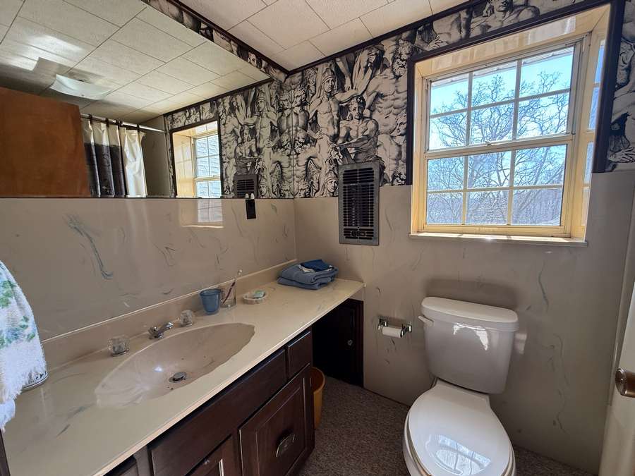 Discover the tranquility and beauty of this expansive 97-acre property, perfectly situated on the outskirts of Golconda, Illinois. Hunt whitetail deer, ducks and turkey on this diverse tract with direct access to the Ohio River. This land is an ideal blend of open pasture and mature woods, with a picturesque bluff line that borders the majestic Ohio River making it perfect for hunting. Bordering this property is a crop field offering a great source of food for deer and turkey. But this piece offers the perfect bedding piece with excellent cover and water from the two ponds. Arriving at the property, you'll find a charming farmhouse nestled at the end of a private lane, offering spacious rooms for entertaining guests, central heating and air conditioning for year-round comfort, and stunning river views during the winter months. The well-maintained 30 x 50 barn, equipped with a lean-to, concrete flooring, electricity, and automatic doors, provides ample space for storing your RV, tractor, or other equipment. Adjacent to the barn, the two-stall horse stable is thoughtfully designed for caring for horses, with concrete floors and electricity to make daily chores easier. Beyond the buildings, the land itself is the property's crown jewel. A trail winds through the acreage, granting easy access for hiking, horseback riding, or simply exploring the scenic surroundings. You can venture all the way to the river's edge and experience the breathtaking bluff views. Wildlife abounds here-Whitetail deer and wild turkey are frequent visitors, making this a paradise for nature lovers and hunters alike. The property is also well-suited for livestock, having previously supported cattle, and features two ponds. Another added bonus is that there is also access off of the Bay City Blacktop, making two access points to the property. Take advantage of the proximity to the Shawnee National Forest for endless outdoor adventures. The historic, peaceful town of Golconda offers essential amenities such as eateries, a pharmacy, and a hardware store, and you're just a short 30-minute drive from Paducah, Kentucky. Natural Gas furnace, hot water heater and range. 4 bedroom 2 1/2 bath farmhouse with an unfinished basement, 30 x 50 pole barn with concrete floor, power, 2- 12 x 10 overhead doors with garage door openers and 2 stable horse barn with power. Whether you're seeking a retreat, a home, or a working farm, this property is an incredible opportunity to enjoy country living at its finest. For reference approximate room sizes: Dining room 13.6 x 13.6; den/tv room 13 x 13.10; kitchen 12.4 x 13.3; main first floor bedroom with attached bathroom 23 x 12; 3 bedrooms upstairs 11.4 x 13.4, 13.4 x 8 and 17 x 13.5.