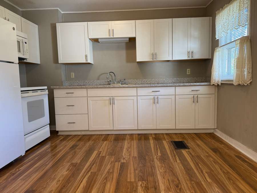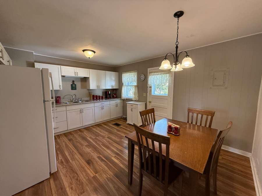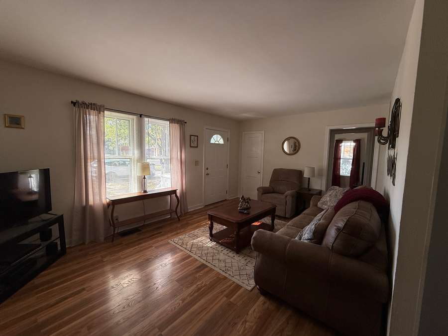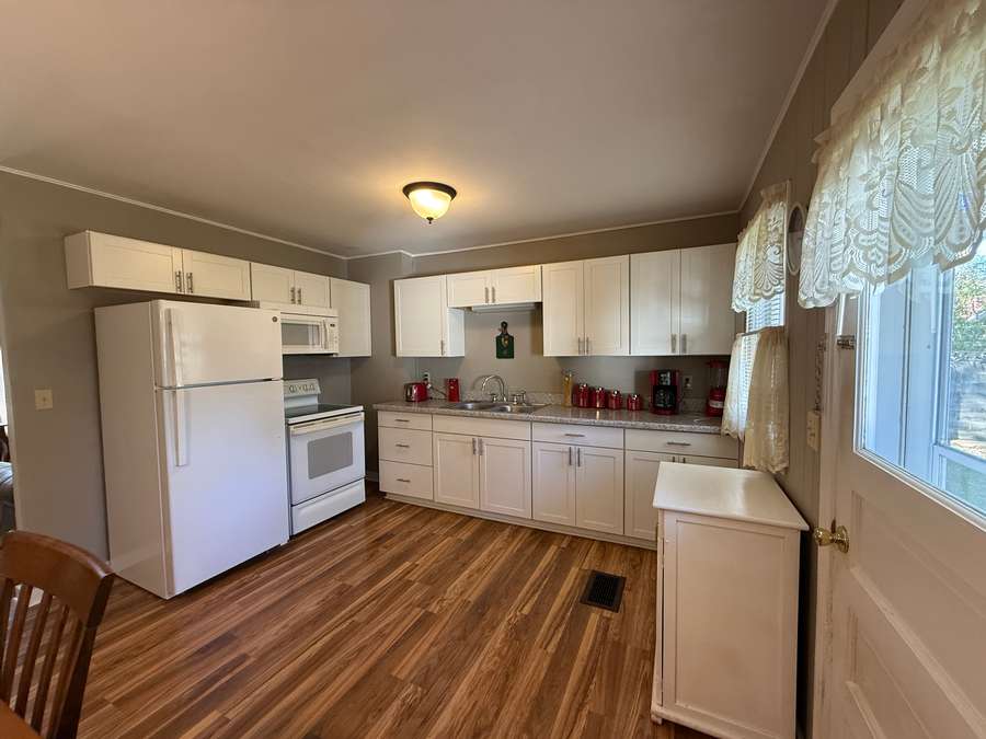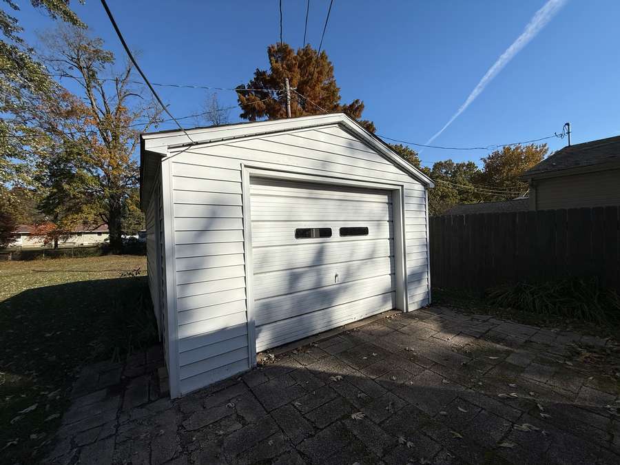 Welcome home to this charming 2-bedroom, 1-bath gem that's been beautifully updated and lovingly maintained. Featuring laminate flooring throughout and a spacious, fully fenced yard, this property is perfect for anyone seeking comfort, value, and a little extra space to make their own. Step inside to a bright and inviting living room filled with natural light from two large windows. The open flow to the eat-in kitchen makes entertaining easy and cozy. You'll love the modern kitchen updates - including newer cabinets, above-range microwave, refrigerator, and faucets - all completed within the last five years. The bathroom has also been refreshed with a new toilet and shower surround, and you'll find other thoughtful upgrades throughout: a new front door, new garage door and opener, heat pump, hot water heater, and new roof on both garages. Even the light switches and outlets have been replaced! The attached one-car garage includes washer and dryer hookups with easy access directly from the kitchen. Out back, the second garage offers wonderful versatility - ideal for a craft studio, workshop, or extra storage for lawn and garden tools. Both bedrooms feature ample closet space, and despite its smaller footprint, the home feels surprisingly roomy and comfortable. This move-in ready home is perfect for a retired couple looking to downsize or a young couple ready to start their homeownership journey. You can't rent for what you can buy this home for! Call today to schedule your personal tour! It is ready for you to move right in.