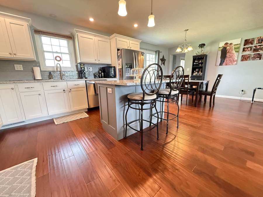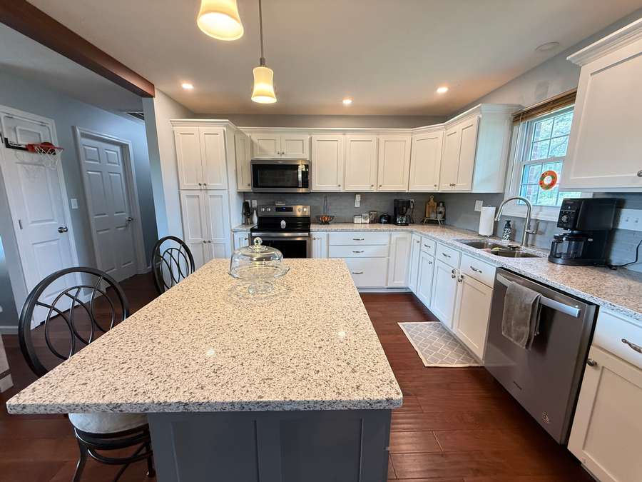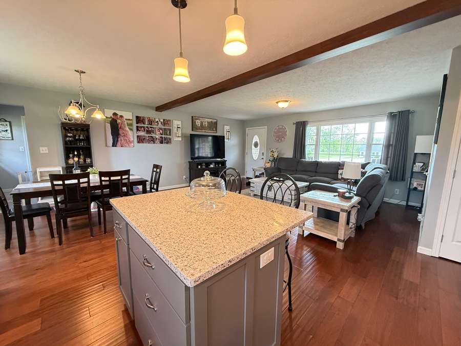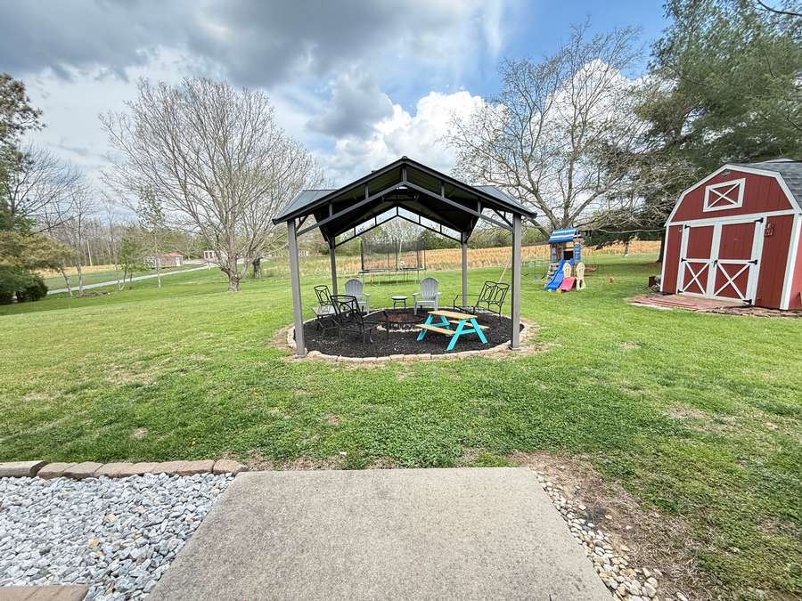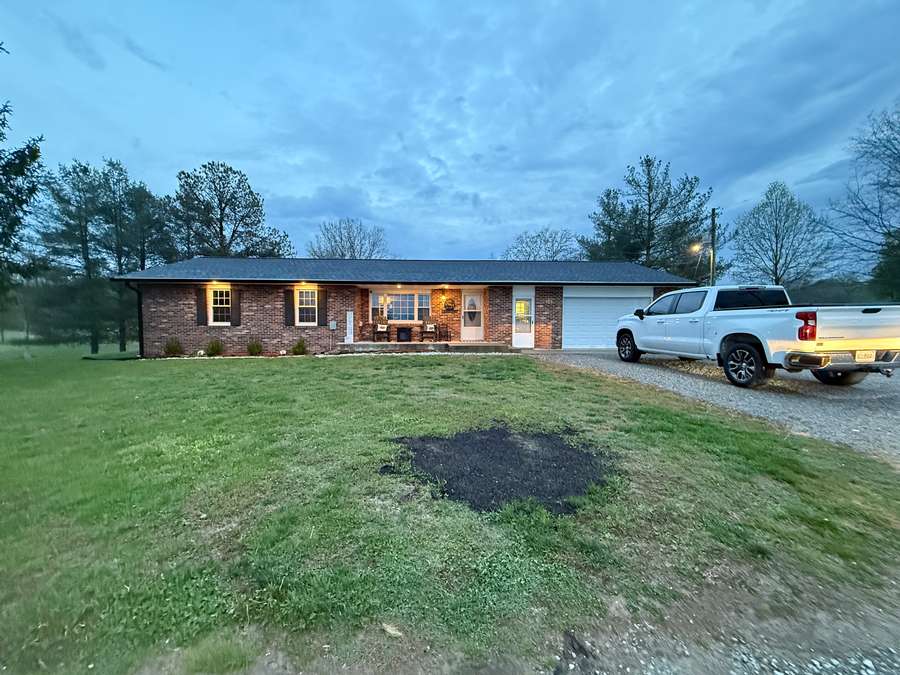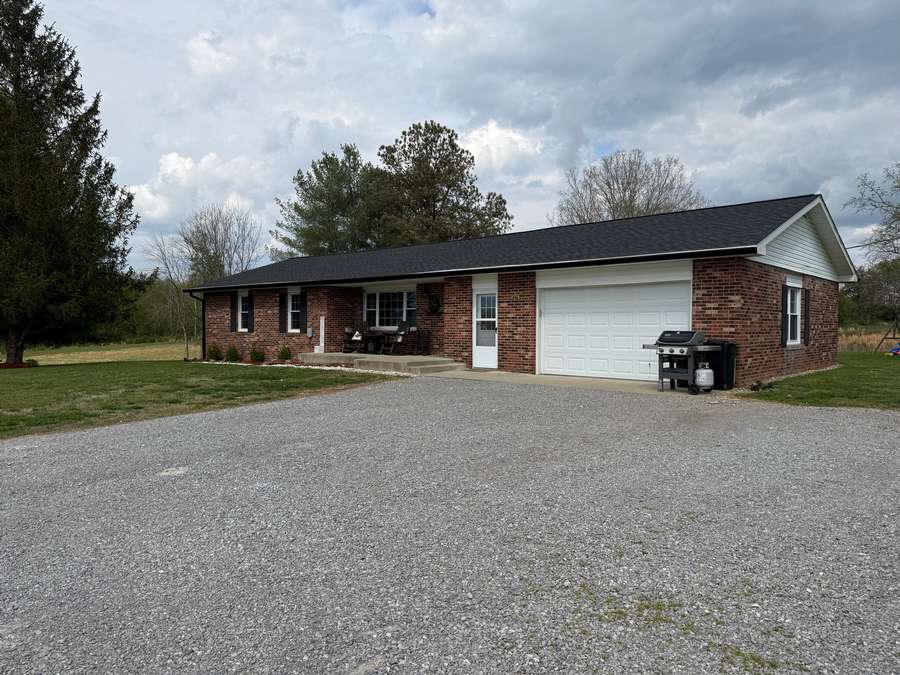 Discover this beautifully remodeled open concept 3 bedroom, 2 bath home located on Highway 145 in Pope County, just minutes Harrisburg, Illinois and Paducah, Kentucky. Set on a generous 1.5-acre lot, the property offers both privacy and convenience, with an attached garage and perfect storage shed. Enjoy the inviting back yard with the perfect space under the pergola. The home underwent a stunning transformation in 2018, featuring quality finishes throughout. Step into the kitchen and admire Amish made custom cabinets, elegant quartz countertops, island and stainless steel appliances, and a stylish backsplash that ties the space together. The open concept layout seamlessly connects the kitchen, dining area, and spacious family room, creating an inviting atmosphere perfect for gatherings or relaxing evenings. Both bathrooms have been thoughtfully updated, with the en-suite boasting a custom walk-in shower and a beautiful Amish made vanity. The laundry/mud room is equipped with ample cabinetry and a Whirlpool washer and dryer purchased in 2020. Installed during the 2018 remodel, enjoy peace of mind with new windows, roof, HVAC system, garage door, and a 200 amp breaker box installed during the remodel. The roof, gutters and downspouts are new in 2026. The attached garage provides parking and additional storage options, while the storage building ensures you have space for outdoor equipment or hobbies. Located in a convenient area for commuting, this home is also close to recreational destinations like Dixon Springs State Park, Lake Glendale, Millstone Bluff, and the Tunnel Hill Bike Trail. Shotgun Eddy's is located down the road at Eddyville, Illinois or you can drive in to Golconda and treat yourself to the Dari Barr or Diver Down. Whether you're seeking a quiet retreat or easy access to adventure, this property blends modern comfort with a prime location for you and your family. Approximate room sizes: Great Room 24 x 23; Laundry Room 8 x 12.8; Bedroom 12 x 12; Bedroom 12 x 11; Bedroom 11.7 x 11; Garage 25 x 30