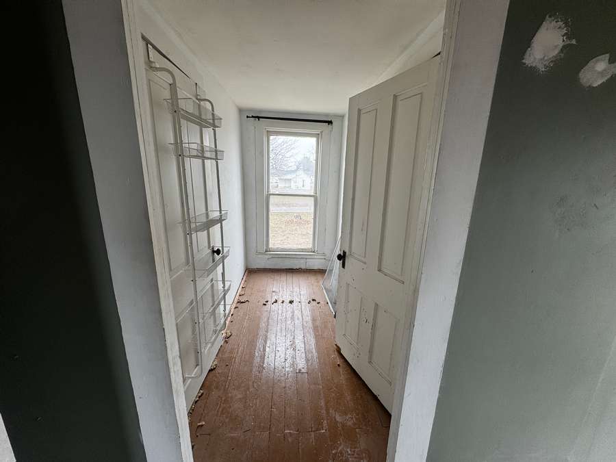 The inviting living room features beautifully original hardwood floors that have been freshly sanded, just waiting for the perfect finishing touches from its new owner. Imagine the cozy gatherings you can host here!