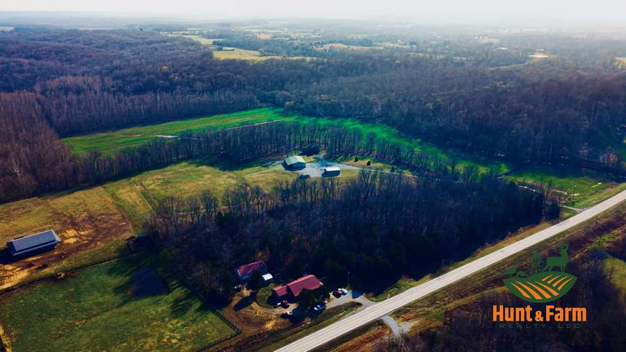 Welcome to a beautiful custom log home set on 40 picturesque acres, offering privacy, rustic charm, and endless opportunities to enjoy the outdoors. From the moment you arrive, the circular driveway provides easy access to both the home and the impressive 40x60 pole barn-perfect for turning around trailers, campers, or farm equipment. Step inside and you'll immediately be drawn to the stunning family room, where soaring wood beams and floor-to-ceiling windows create a warm, inviting space filled with natural light. A striking stone fireplace anchors the room, making it the perfect place to gather with family and friends. The kitchen blends rustic elegance with everyday functionality, featuring warm wood cabinetry, granite countertops, and a convenient peninsula for casual dining or entertaining. Just off the kitchen, step out onto a private deck overlooking peaceful woodland views-an ideal spot for morning coffee or evening relaxation. The main floor offers comfortable and convenient living with a spacious primary bedroom and ensuite bathroom. The primary bedroom showcases a unique stone feature wall that forms the back of the living room fireplace, adding a distinctive architectural touch. Across the home you'll find a second bedroom, a half bath, and an adorable laundry room that is both functional and surprisingly charming. Wooden stairs lead to an inviting loft area upstairs-perfect for a reading nook, craft room, home office, or whatever your imagination inspires. The walkout basement expands the living space with another family room that opens to a private patio overlooking the woods. This level also includes finished rooms that could serve as additional bedrooms, another bathroom for guests, roomy closets, and even a dedicated office space. Outside, the property continues to impress. The 40x60 pole barn features concrete floors and includes a finished room with a half bath, offering a versatile space that could even serve as private guest quarters. Along the back side of the barn is a loafing area that previously sheltered horses. Two additional storage buildings provide plenty of room for side-by-sides, boats, four-wheelers, deer stands, and more. Approximately 25 acres of the property are productive farm ground currently leased to a local farmer for row crops. These crops provide an excellent food source for wildlife, especially white-tailed deer and wild turkey. Outdoor enthusiasts will appreciate being able to step right out the back door to hunt during local bow and shotgun seasons, in an area well known for trophy-size deer. Located at 664 State Highway 145 North, this property sits conveniently between Harrisburg, Illinois and Paducah, Kentucky in the heart of the Shawnee National Forest region. It's just minutes from some of Southern Illinois' most beloved outdoor destinations, including Millstone Bluff, Lake Glendale Recreation Area, Dixon Springs State Park, and the River to River Trail. If you've been dreaming of a peaceful country retreat with room to roam, explore, and enjoy nature, this remarkable log home offers the perfect blend of comfort, recreation, and natural beauty. Schedule your private showing today and come experience all this property has to offer.