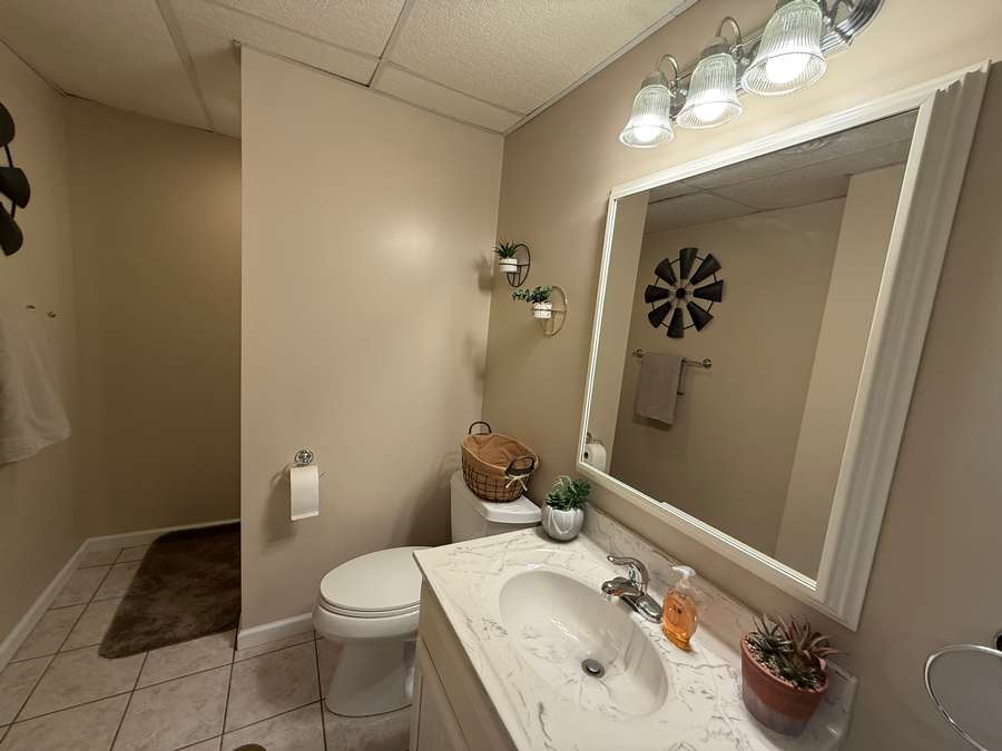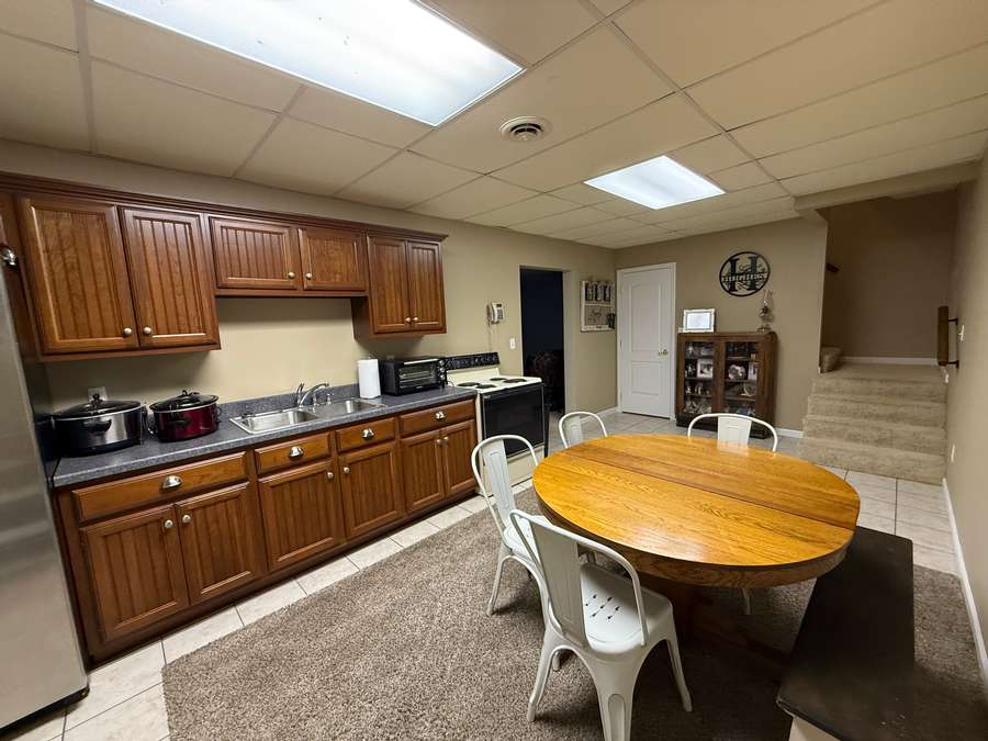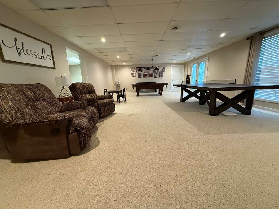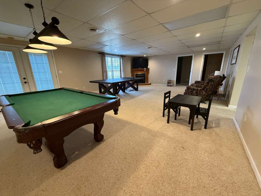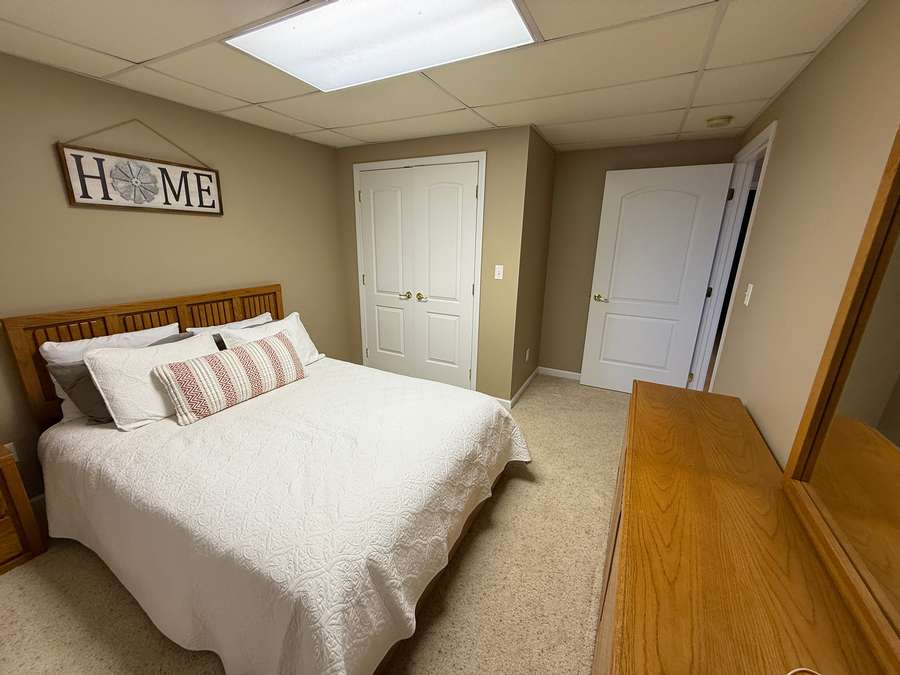Downstairs, the finished walk-out basement expands the living space even further. With a full second kitchen showcasing more beautiful custom cabinetry and tile flooring, this level is ideal for multi-generational living or hosting extended guests. You’ll also find a spacious family room, a bedroom, and a home office. Excellent high speed internet provided by Shawnee Communications makes working from home a breeze. The home’s mechanical systems, including the geothermal heat, are easily accessible, and a large floored storage area provides the perfect place for seasonal décor and extras. Thanks to the walk-out design along the entire west side, the basement is filled with natural light and offers easy access to the hot tub tucked beneath the covered deck—an unbeatable spot to unwind while watching breathtaking sunsets.